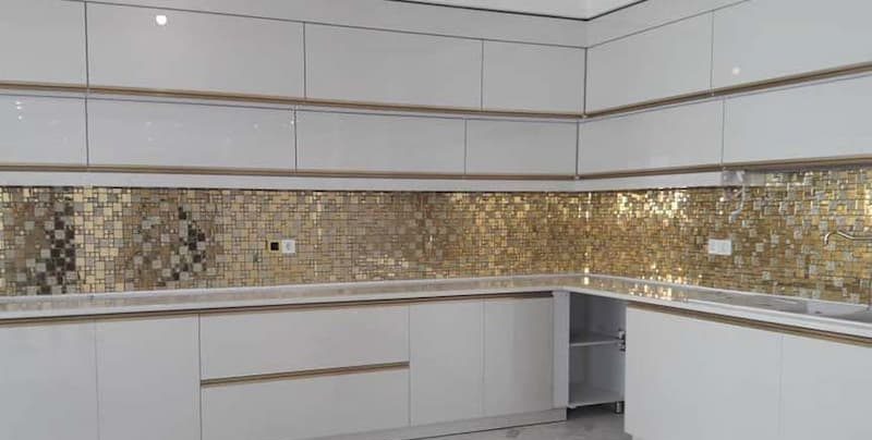 بین کابینتی جدید و مدرن + انواع طرح و رنگ های آن در دوران گذشته، اولین انتخاب مردم برای بین کابینتها معمولاً کاشی کاری بود.